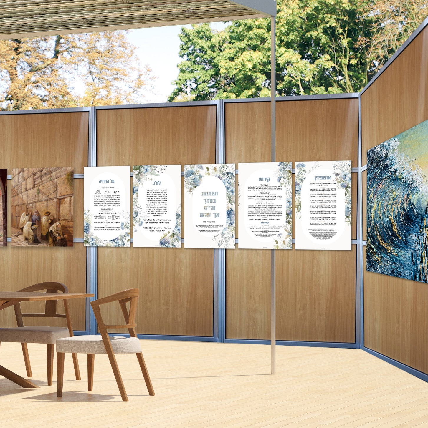 NEW! Enhance your Sukkah with our modern Sukkah Tefillos box. Featuring Lulav, Ushpziin, Al Hamichya, Kiddush, and Bentchers all together for easy Sukkah access.